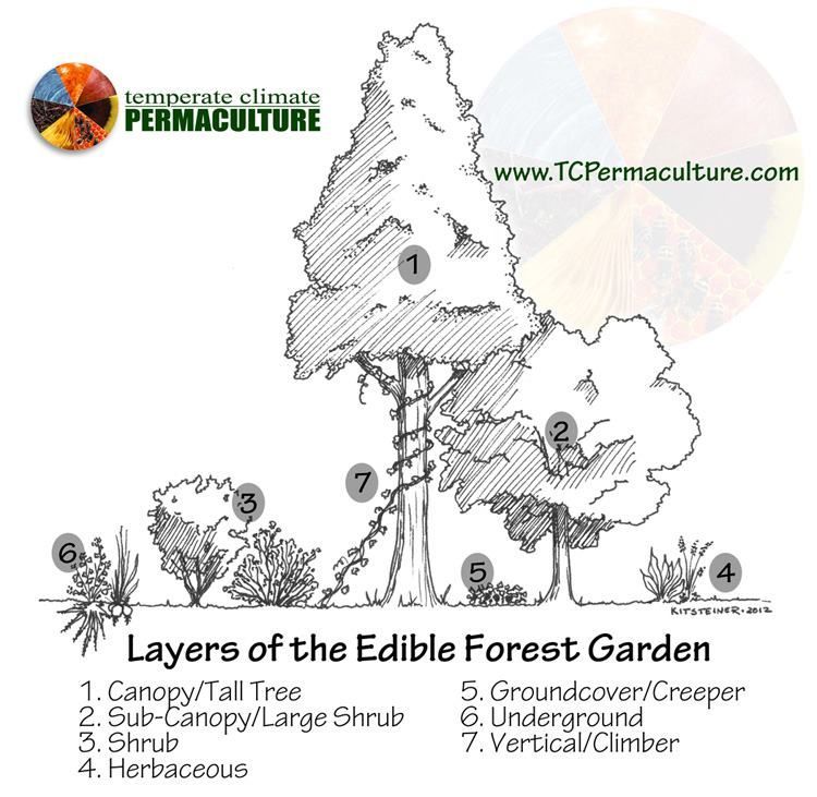 A food forest guild is a unit or building block of a food forest, that includes plants in each of the nine layers of a food forest.